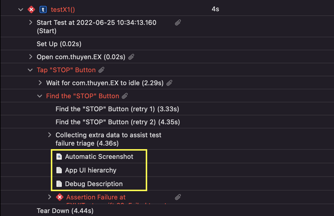 Test Case '-[EXUITests.EXUITests testX1]' failed (4.568 seconds).
