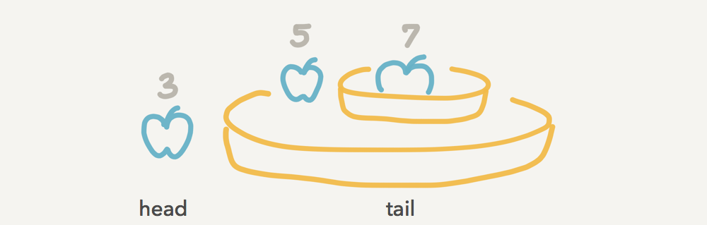 A list could consist of a head and a tail, which is also a list. A list could be nothing as well.